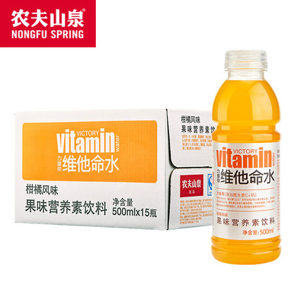 【好乐源】农夫山泉 力量帝维他命水功能饮料柑橘500ml*15整箱