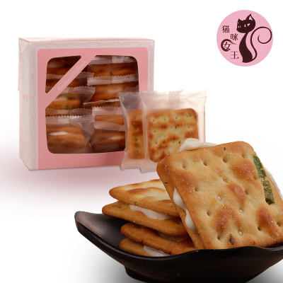 【好乐源 】台湾进口 猫咪女王手工牛轧糖夹心香葱味苏打饼干 点心零食品礼盒